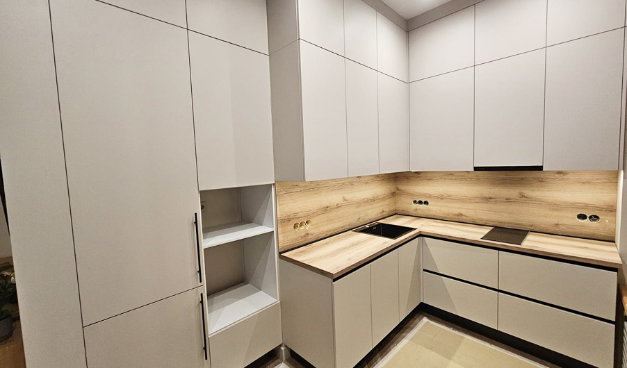 Фасады из МДФ с ПВХ‑покрытием — универсальное решение для любого интерьера. Предлагаем широкий ассортимент цветов и текстур: от классических матовых до эффектных глянцевых поверхностей. Реализуем любые дизайнерские задумки: создаём филёнчатые и фрезерованные фасады, прямые или радиусные формы, гладкие и рельефные текстуры. В работе применяем плёнку от проверенных мировых брендов — она устойчива к износу и сохраняет внешний вид надолго.